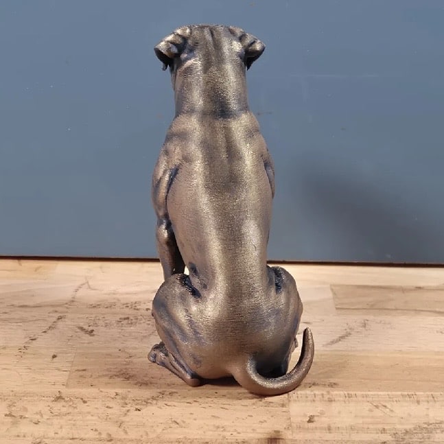 3D-printed Cane Corso dog with bold, sculpted details, finished with hand-applied gold wax to highlight facial features and contours. A strong decorative piece with a matte base and refined metallic accents.