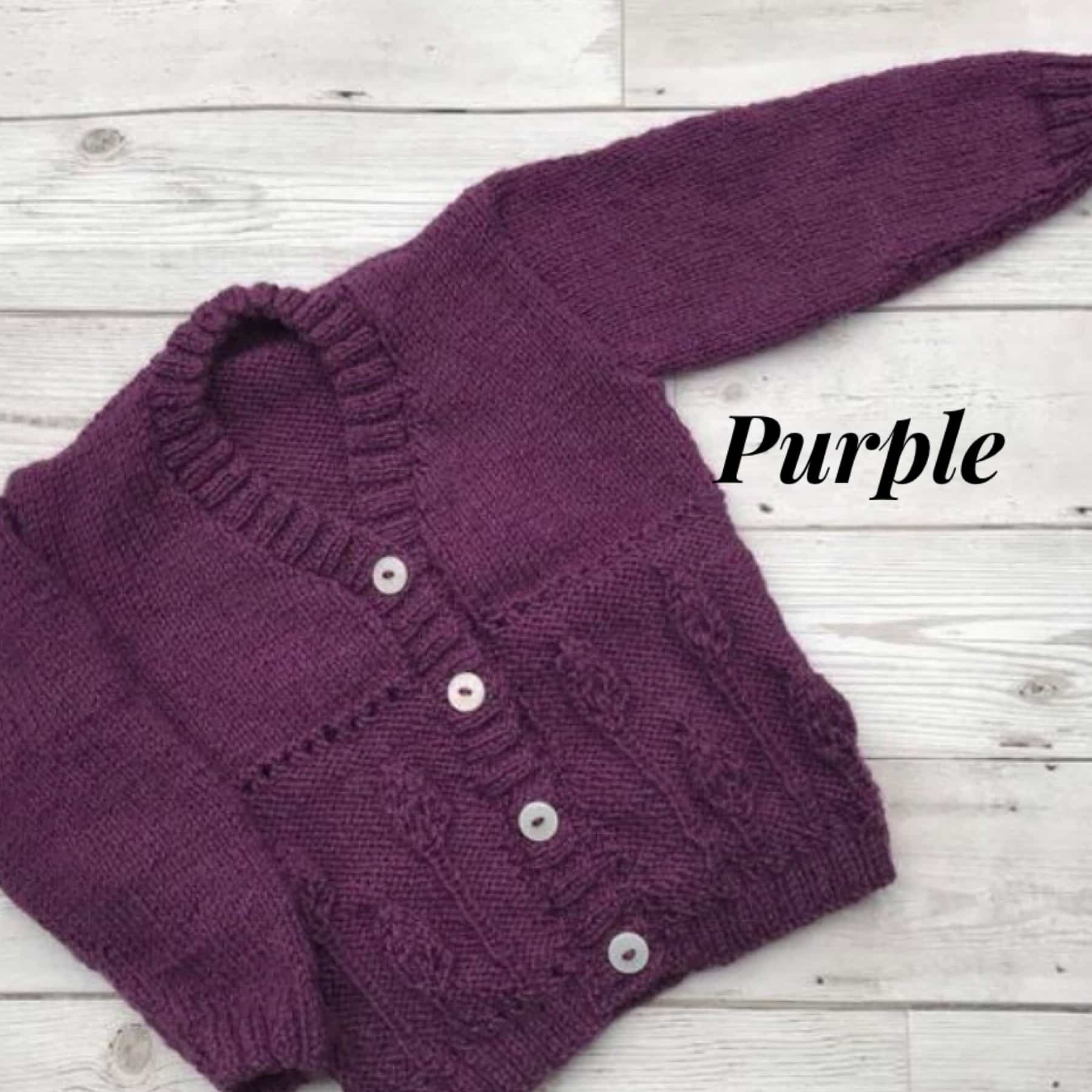 A beautiful hand knitted baby cardigan in a choice of colours to fit 6 to 12 months of age baby.