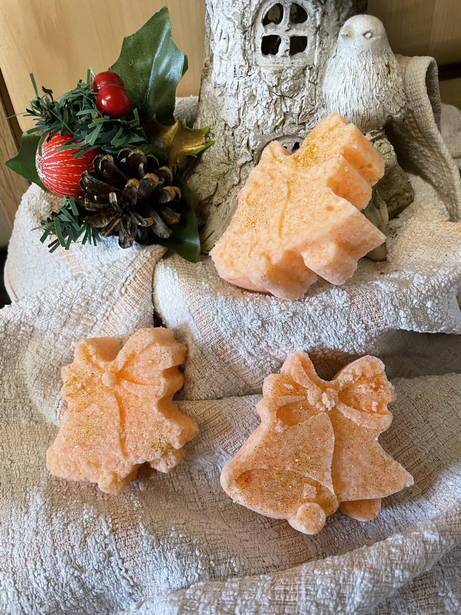 Festive Church Bell Bath Bombs waiting to ring in some Christmas cheer deliciously scented Chocolate Orange. Drop one into your bath tub for a soothing bomb teaming with therapy salts and sink into bubbling water to those uplifting scent after a busy day.