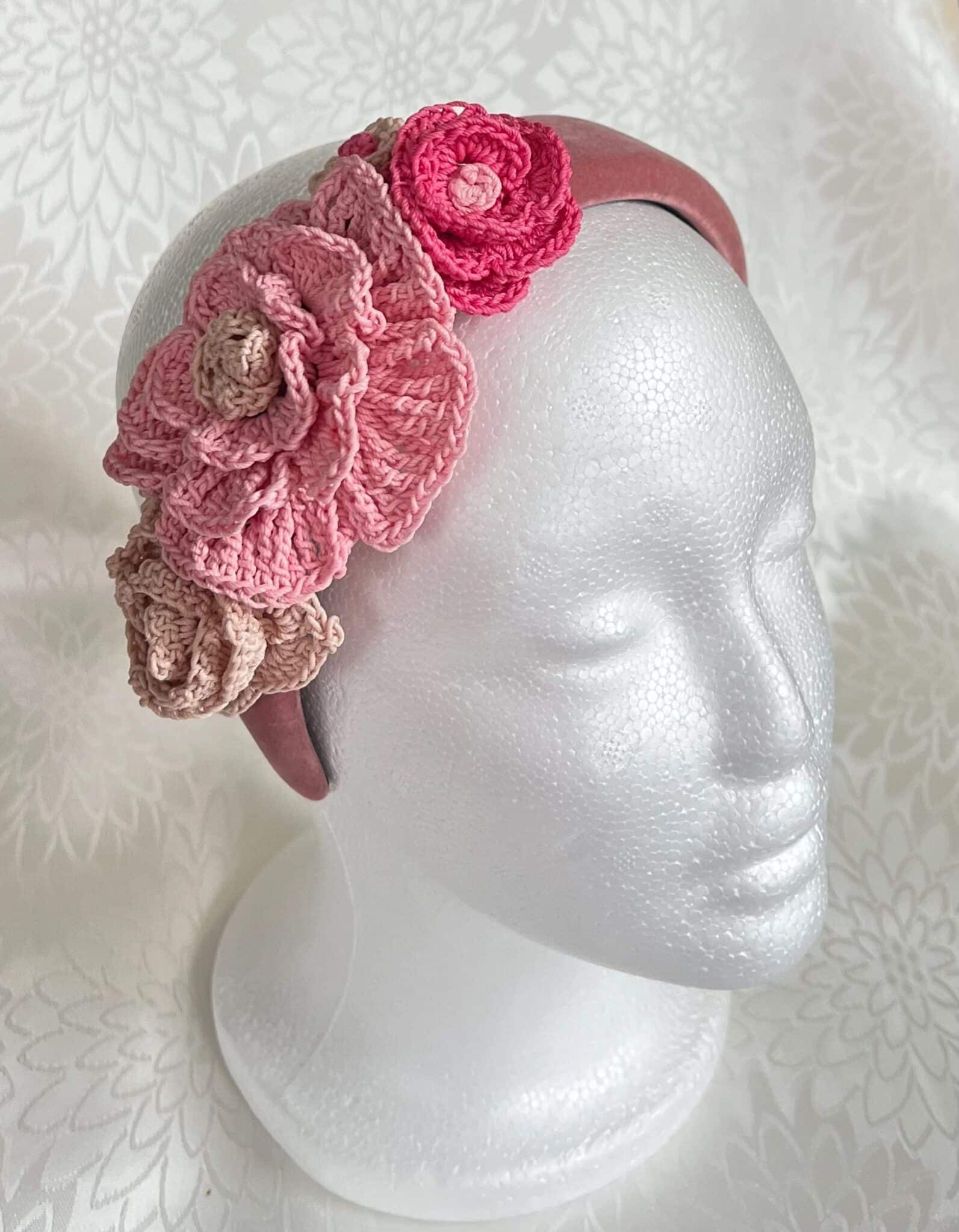 Flowers on your head 💐 Lovely and unique headband for weddings , graduations and other parties or colourful everyday look. 4 handmade crochet roses on a padded soft velvety headband.