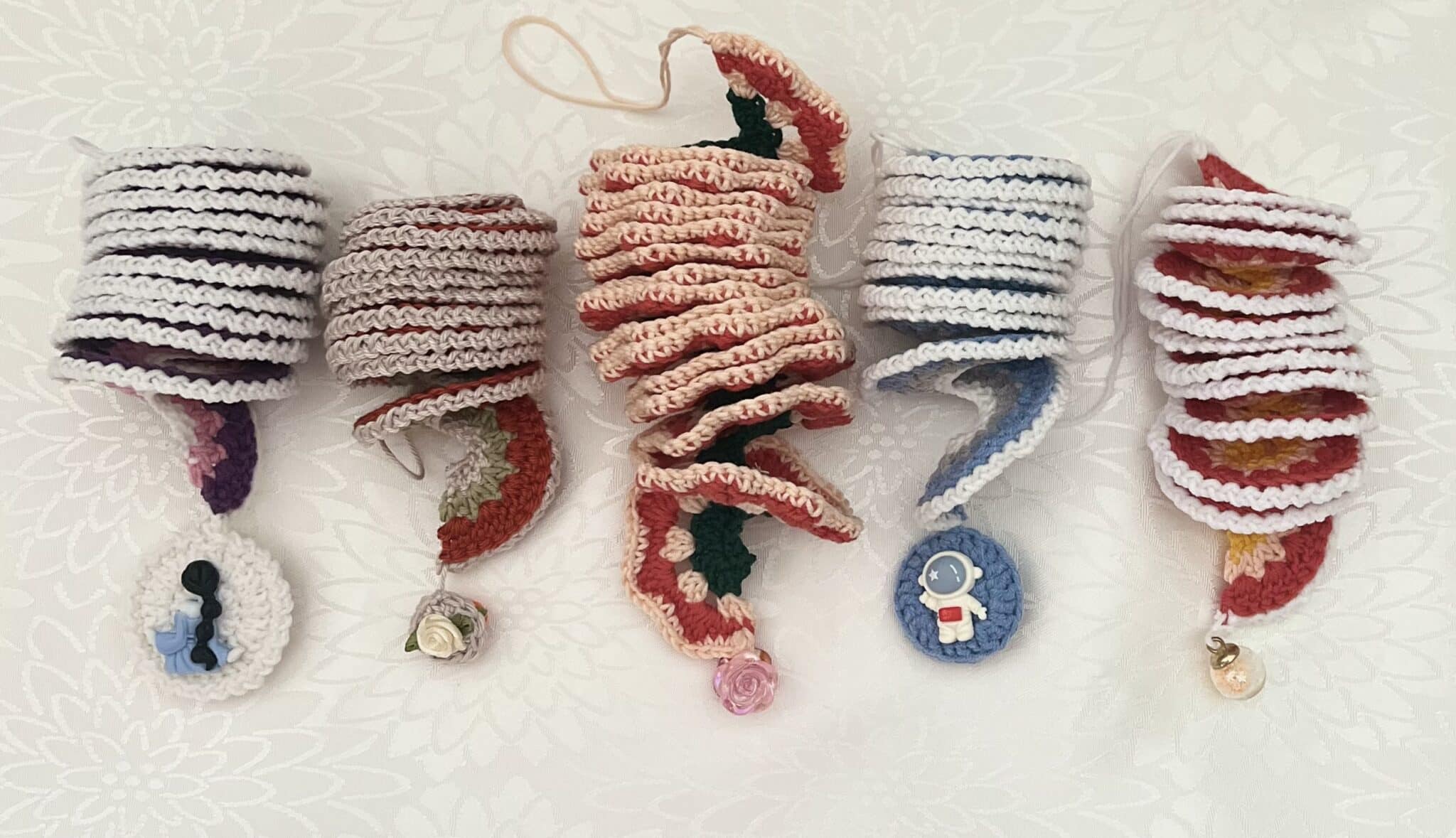 Lovely, therapeutic crochet wind spinners with cute charms, can be used outdoors or indoors, gardens, kids bedrooms, living rooms… Just choose your style and enjoy!