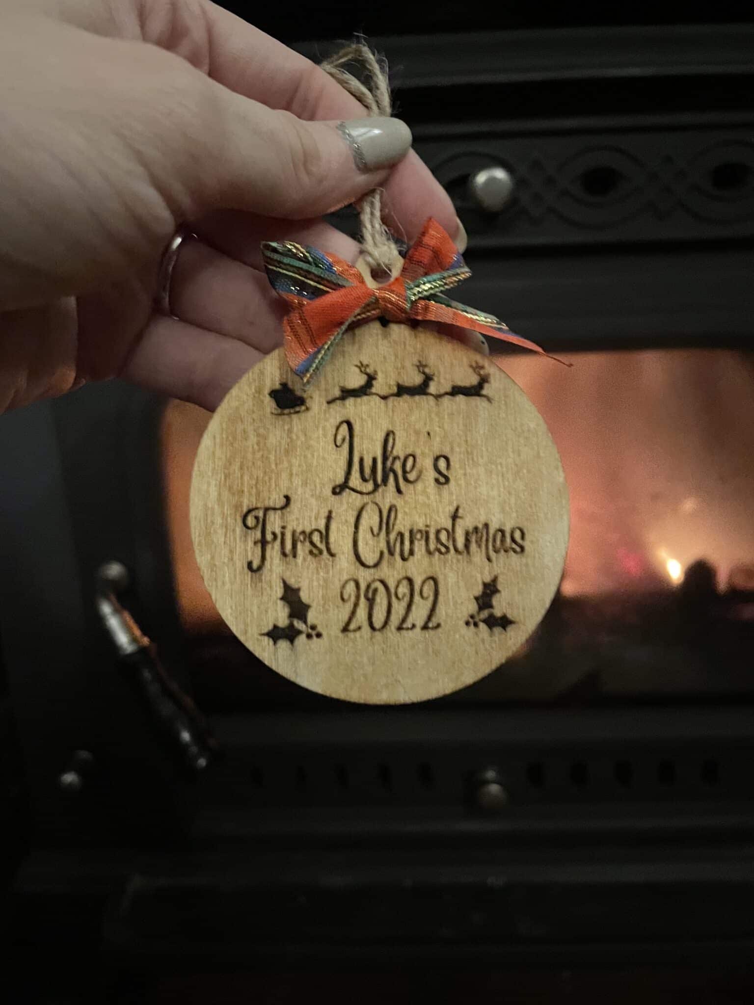 Example shows Babys first Christmas, but any quote is possible! (Up to 5 words max!)