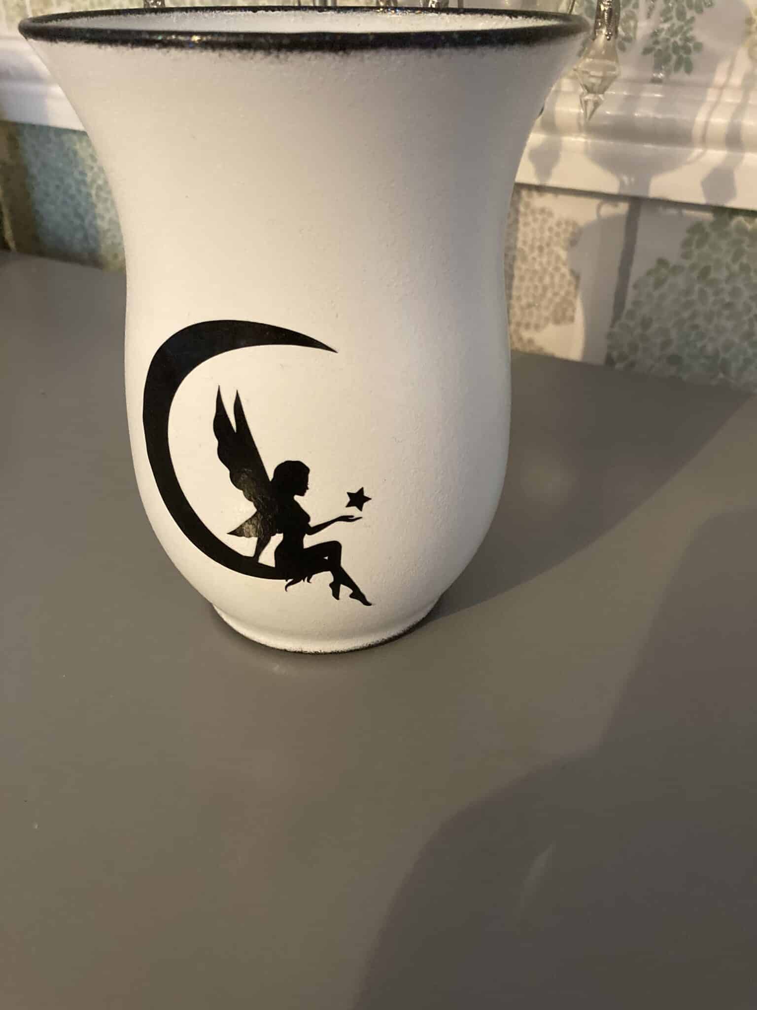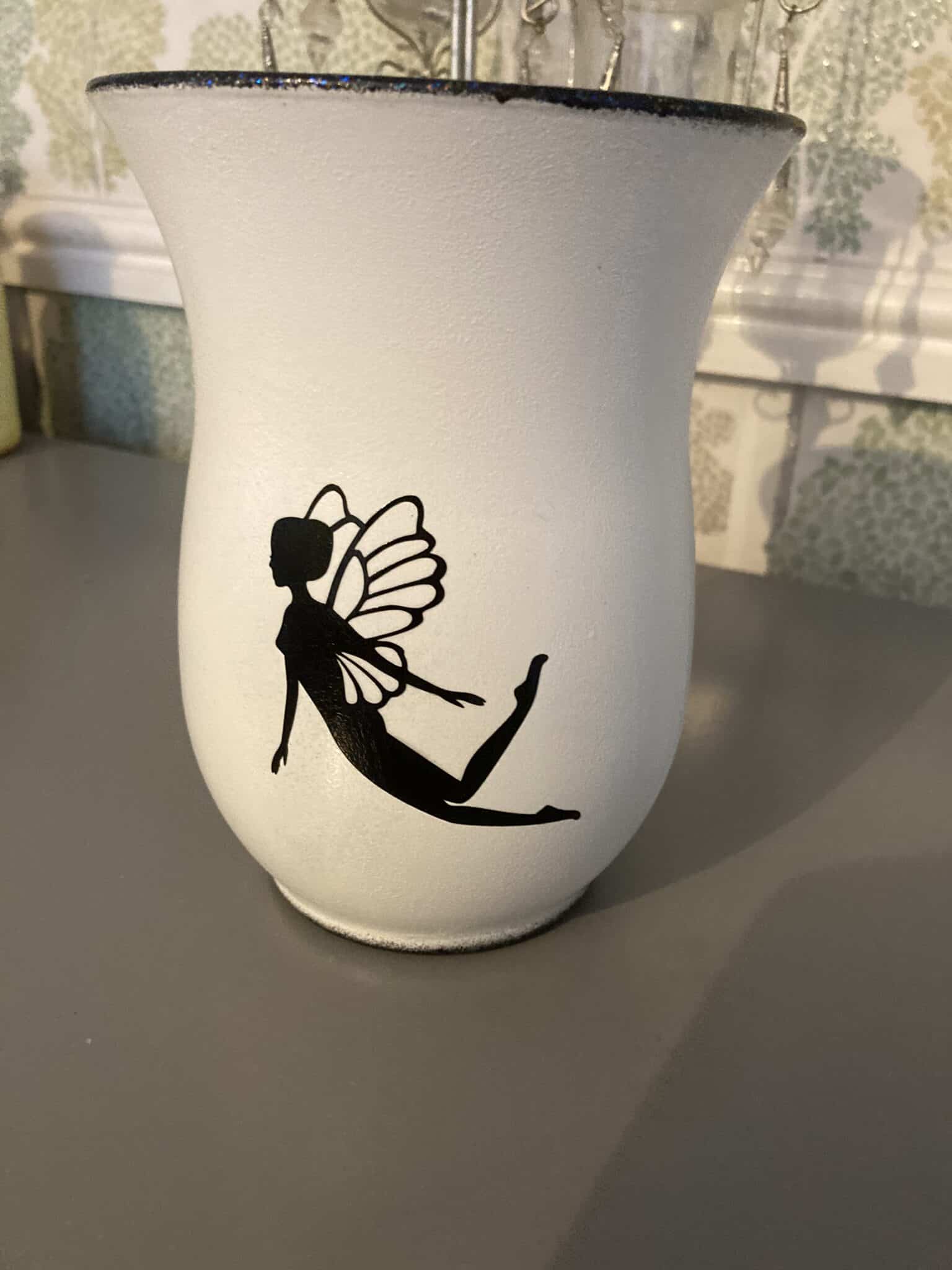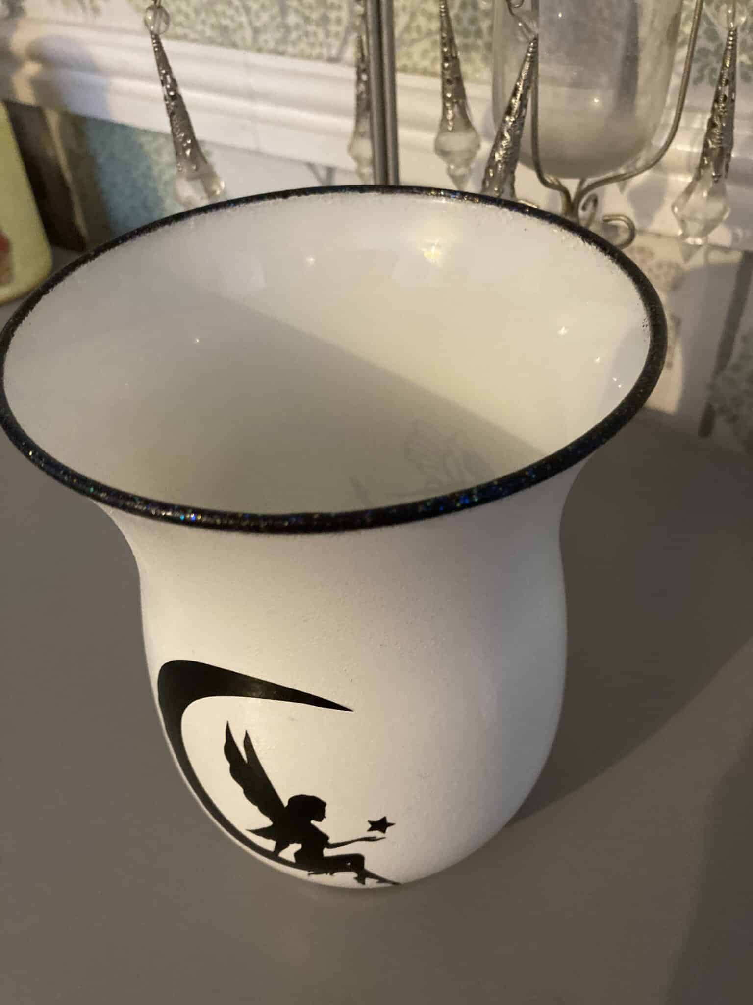 Hand painted and fairy vinyl applied with a touch of glitter to the top and bottom