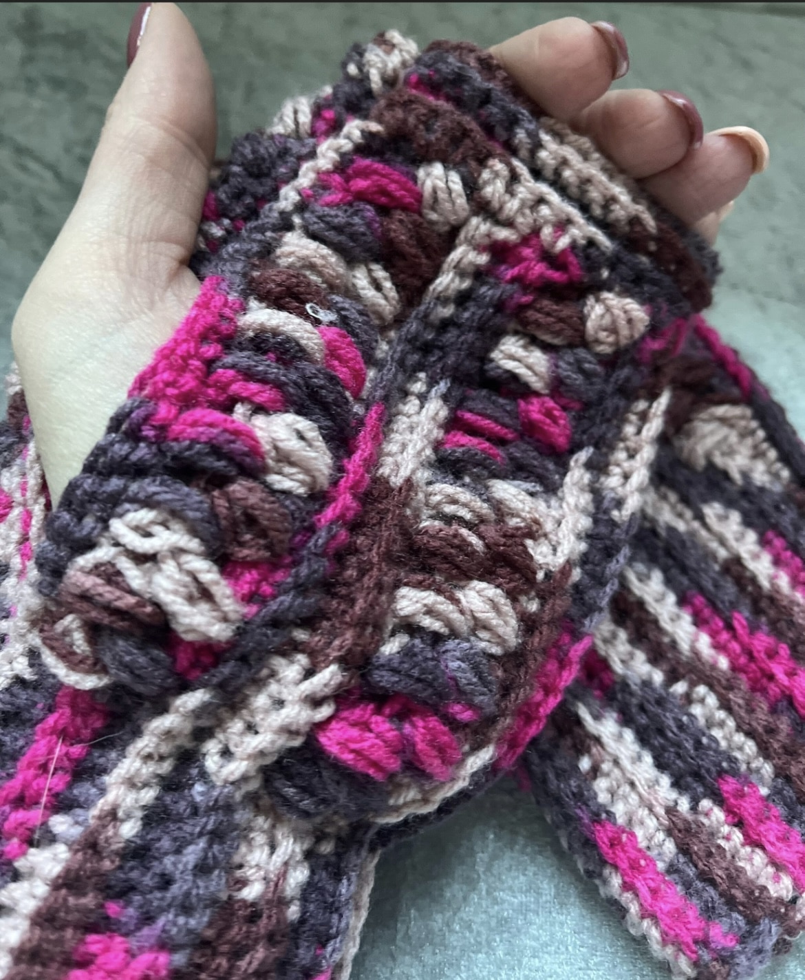 Fingerless Mittens in pink and purple mix