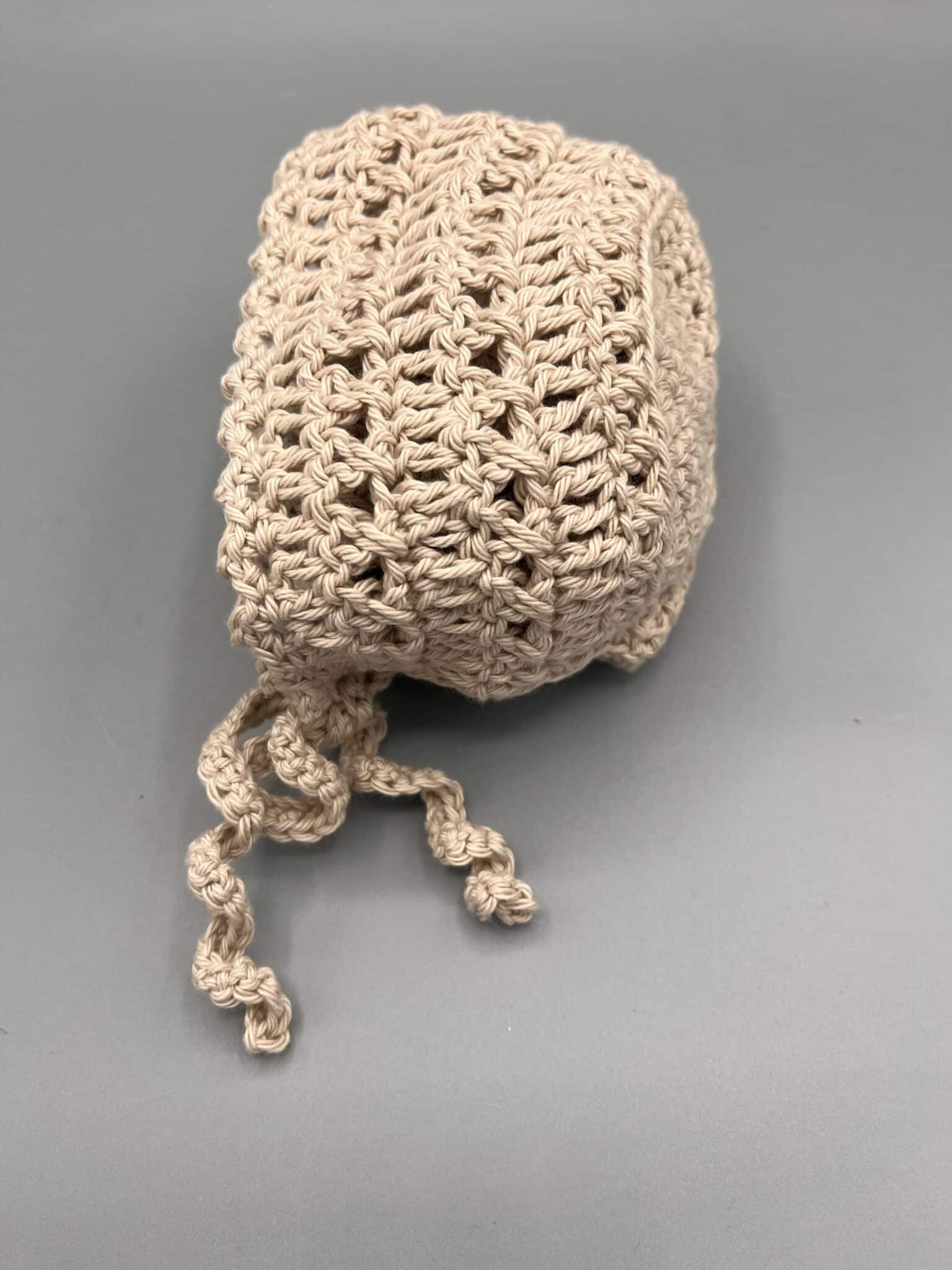Hand made soft cotton crocheted bonnet booties and mittens to fit 0-3 months.