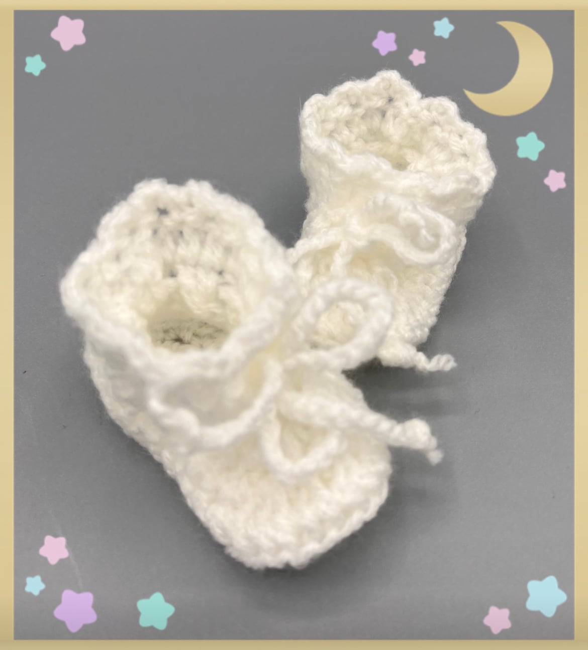 Beautiful baby hat, bootties and mittens made in baby soft washable acrylic.