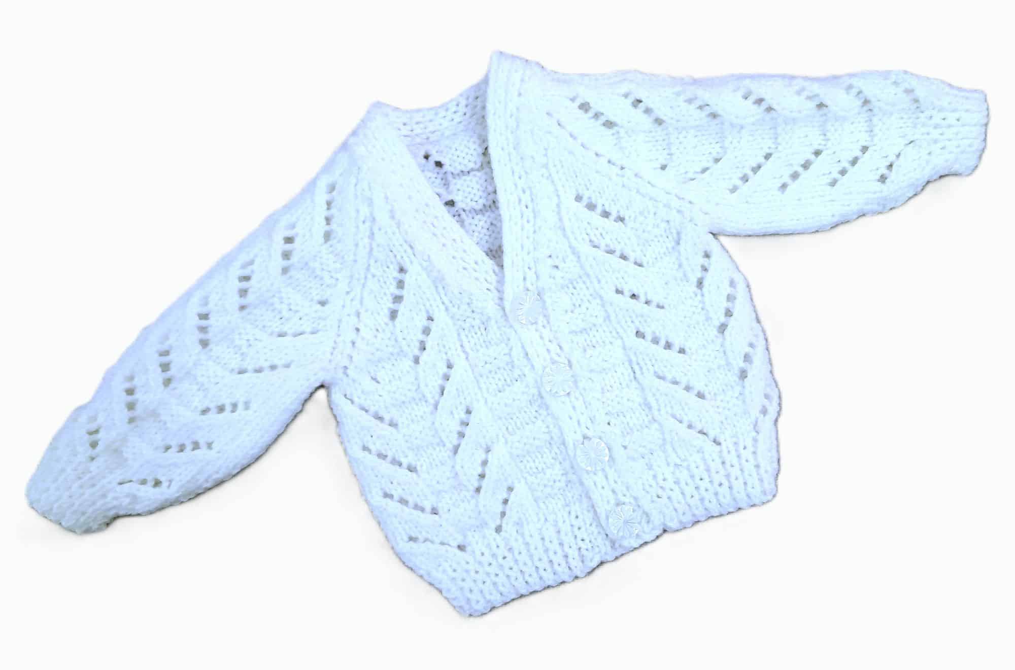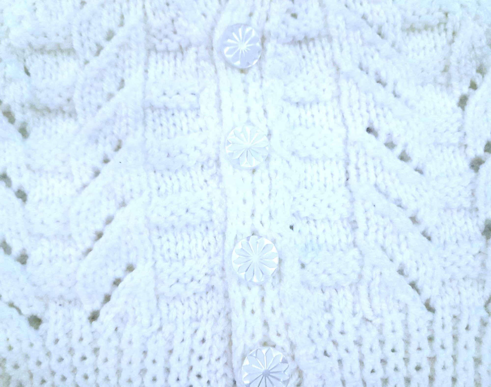 Hand-Knitted Baby Cardigan~White~0-3 months