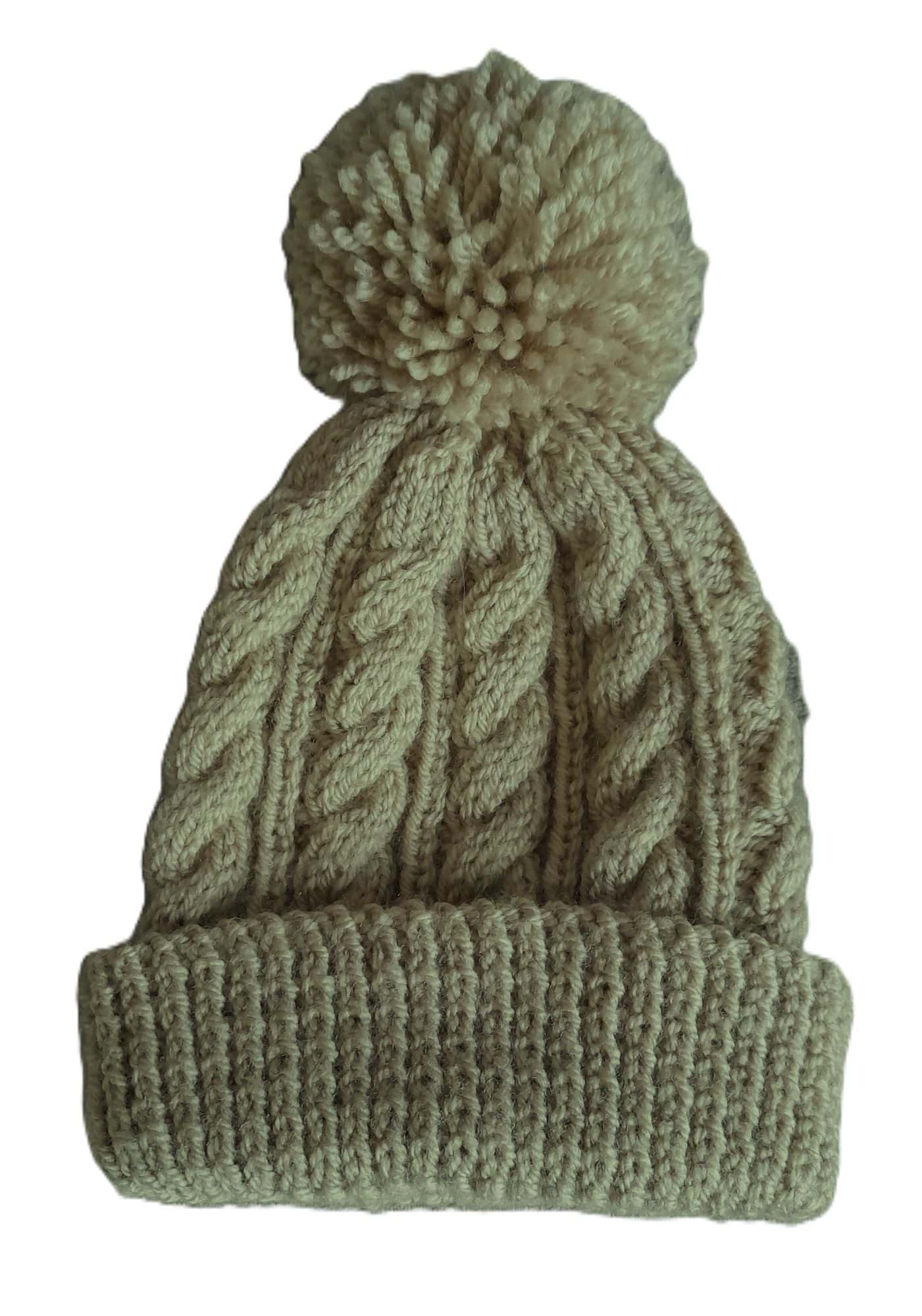 Hand-Knitted Cable Hat with Pom Pom~Pebble~6-12 months