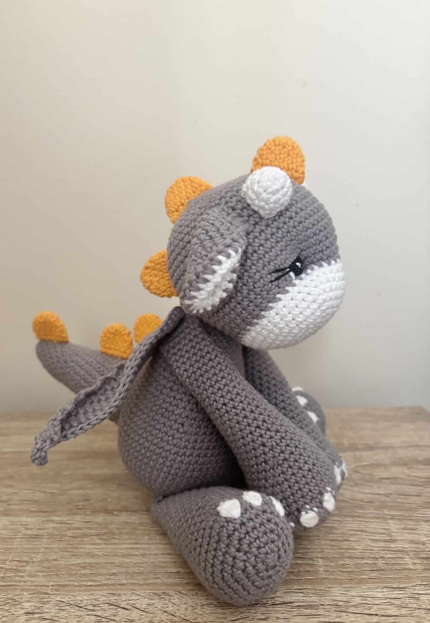 Dragon is made using toy stuffing and 100% cotton yarn in the colours Mouse Grey and Tangerine.