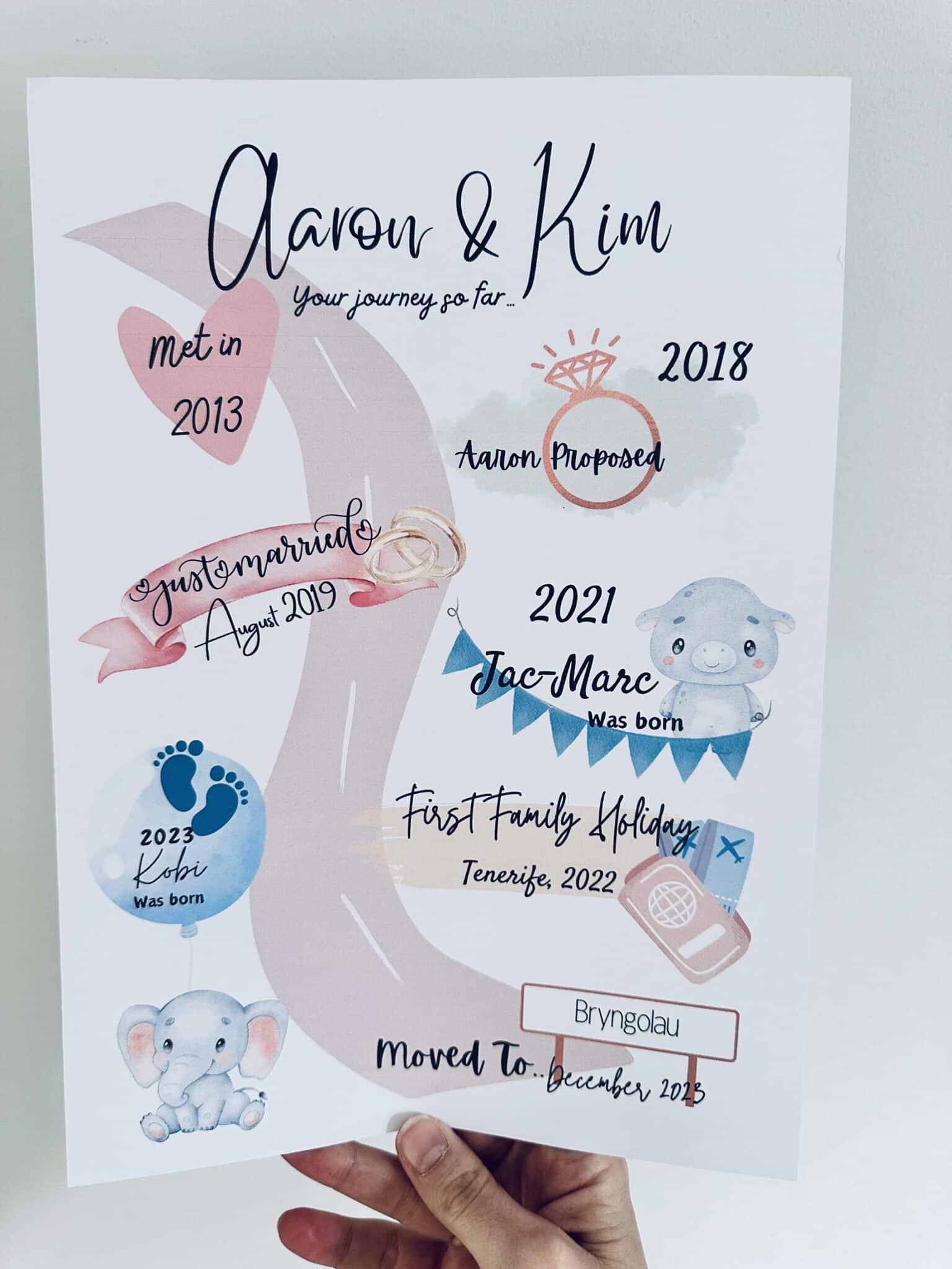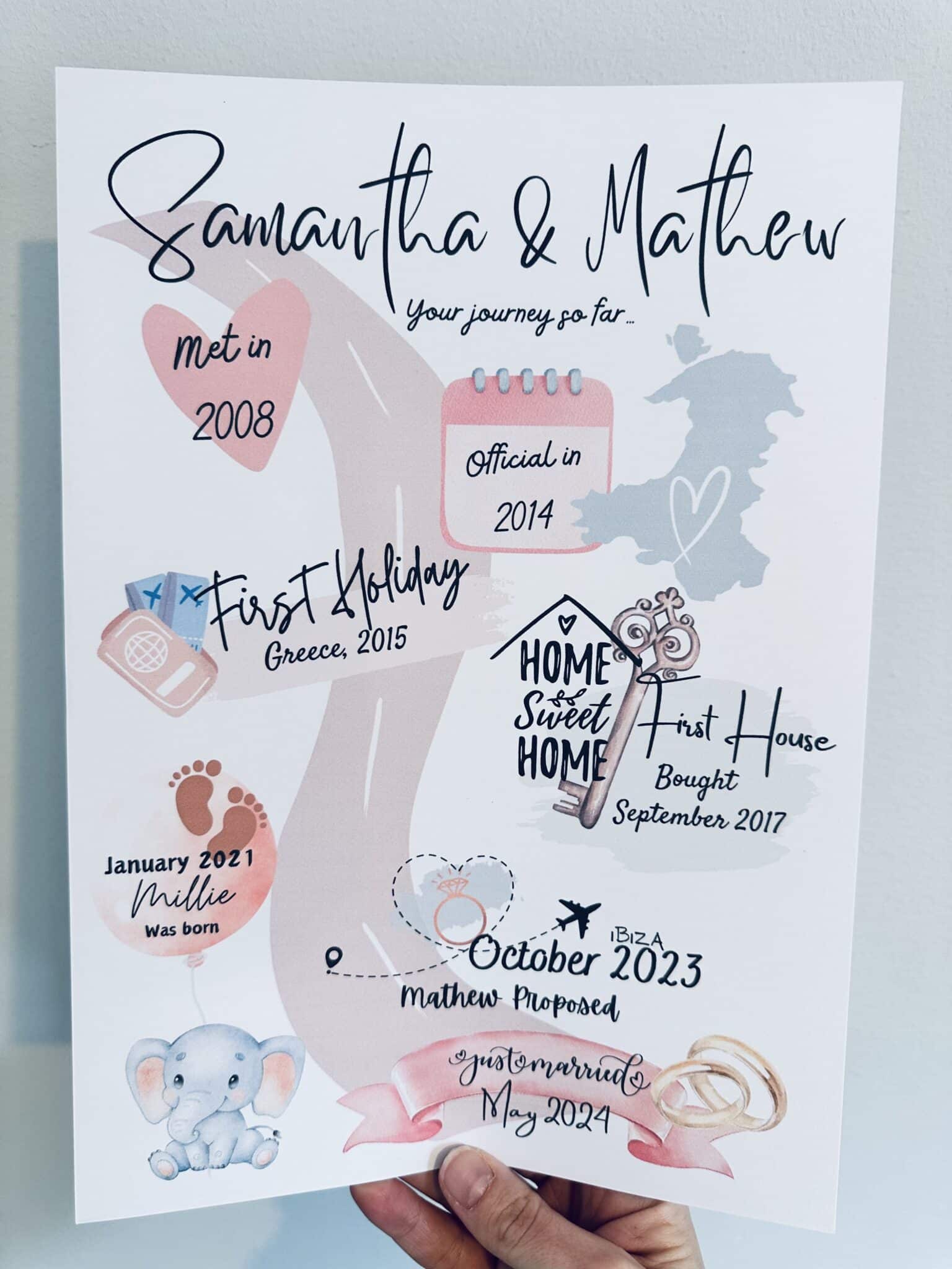 Please provide the moments you’d like added. Ensure all spellings are correct and dates are provided. *colours may vary* Any further information please contact me