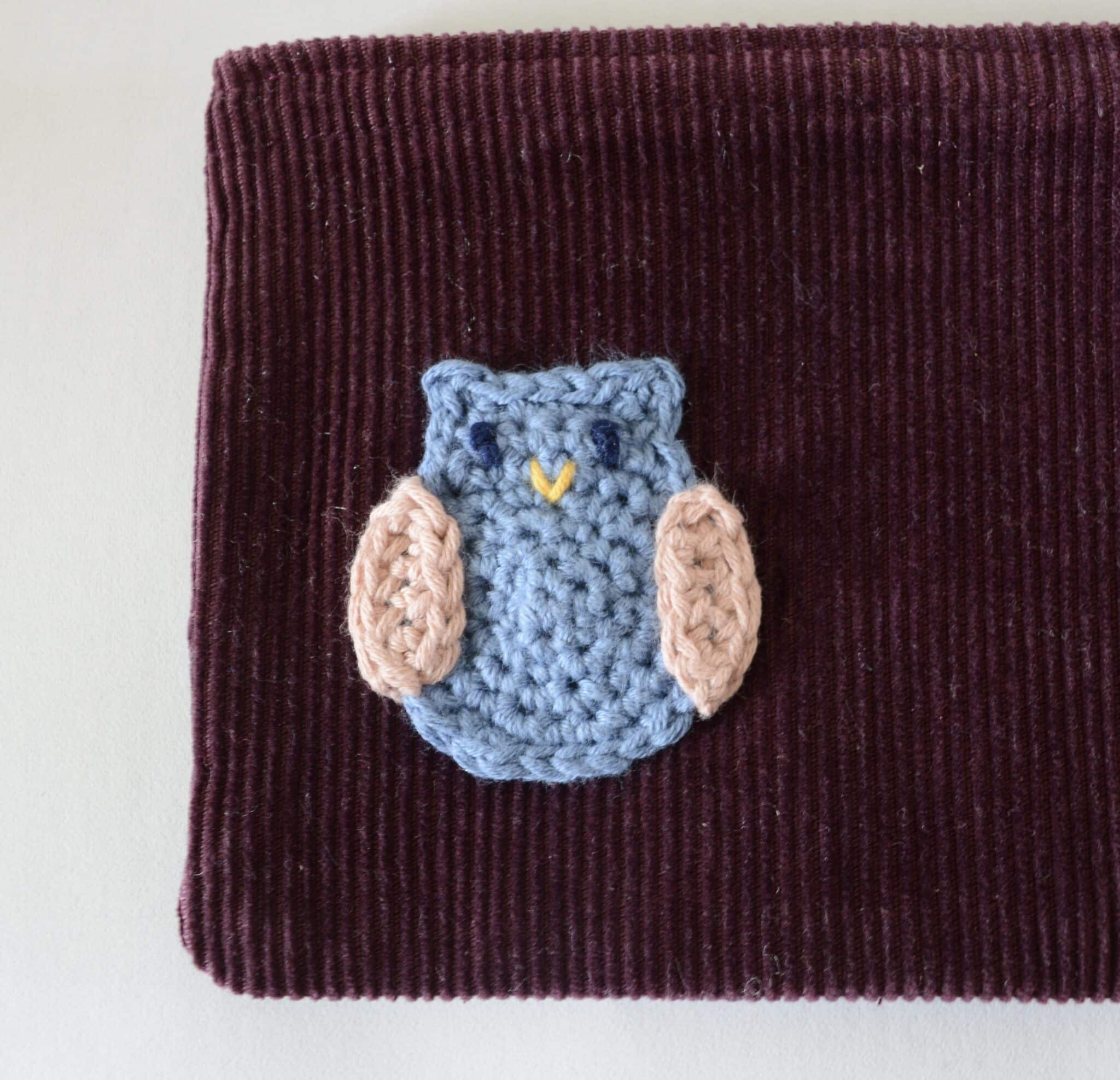 Pencil case with a cute hand crocheted owl applique and matching zip.