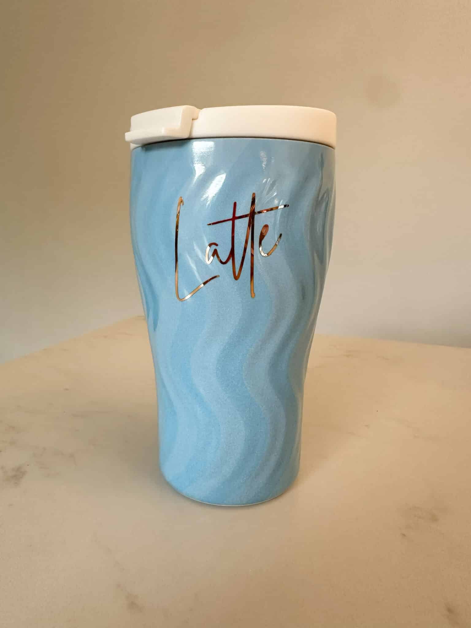 Brand new from Costa Coffee for May 2024. These gorgeous stainless steel cups come in light blue, dusty pink and matt grey. They are based on Costas best selling (but discontiued!) waffle cups due to the texture.