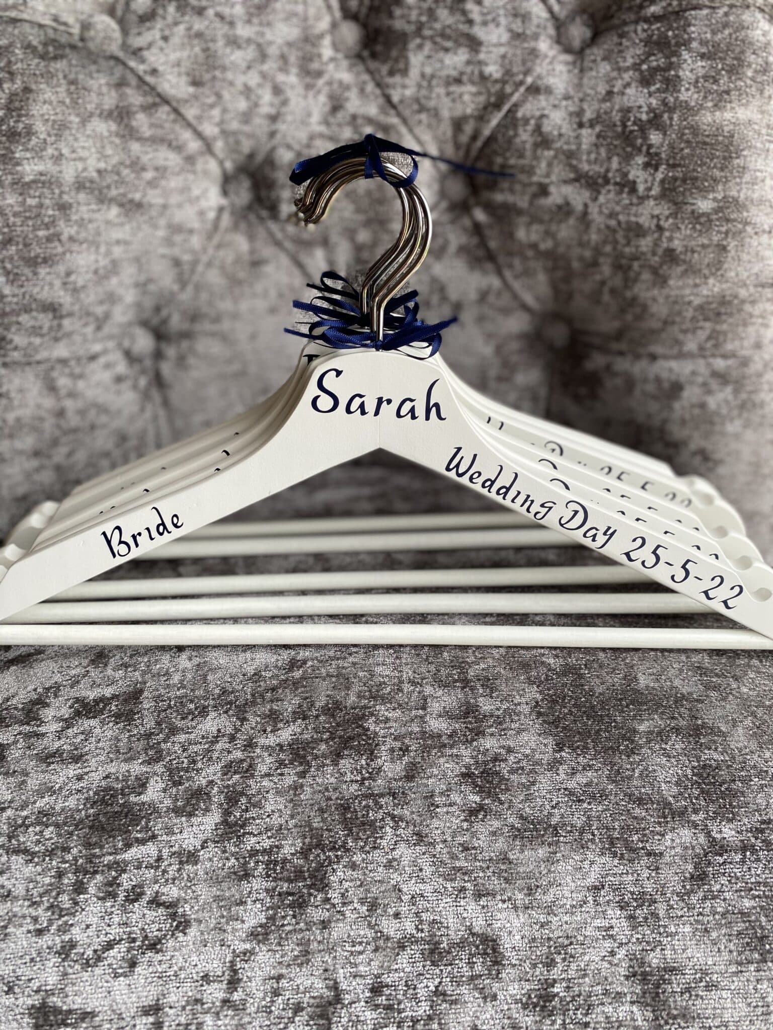 Personalised Wedding hangers, can be created with any name, wedding party role, date and in any colour.
