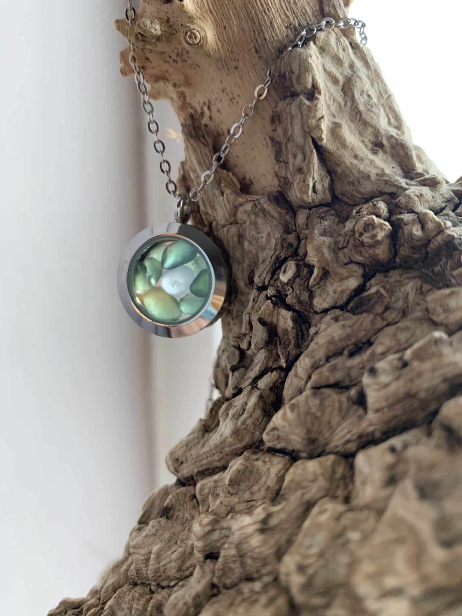 Sea glass floating pendant