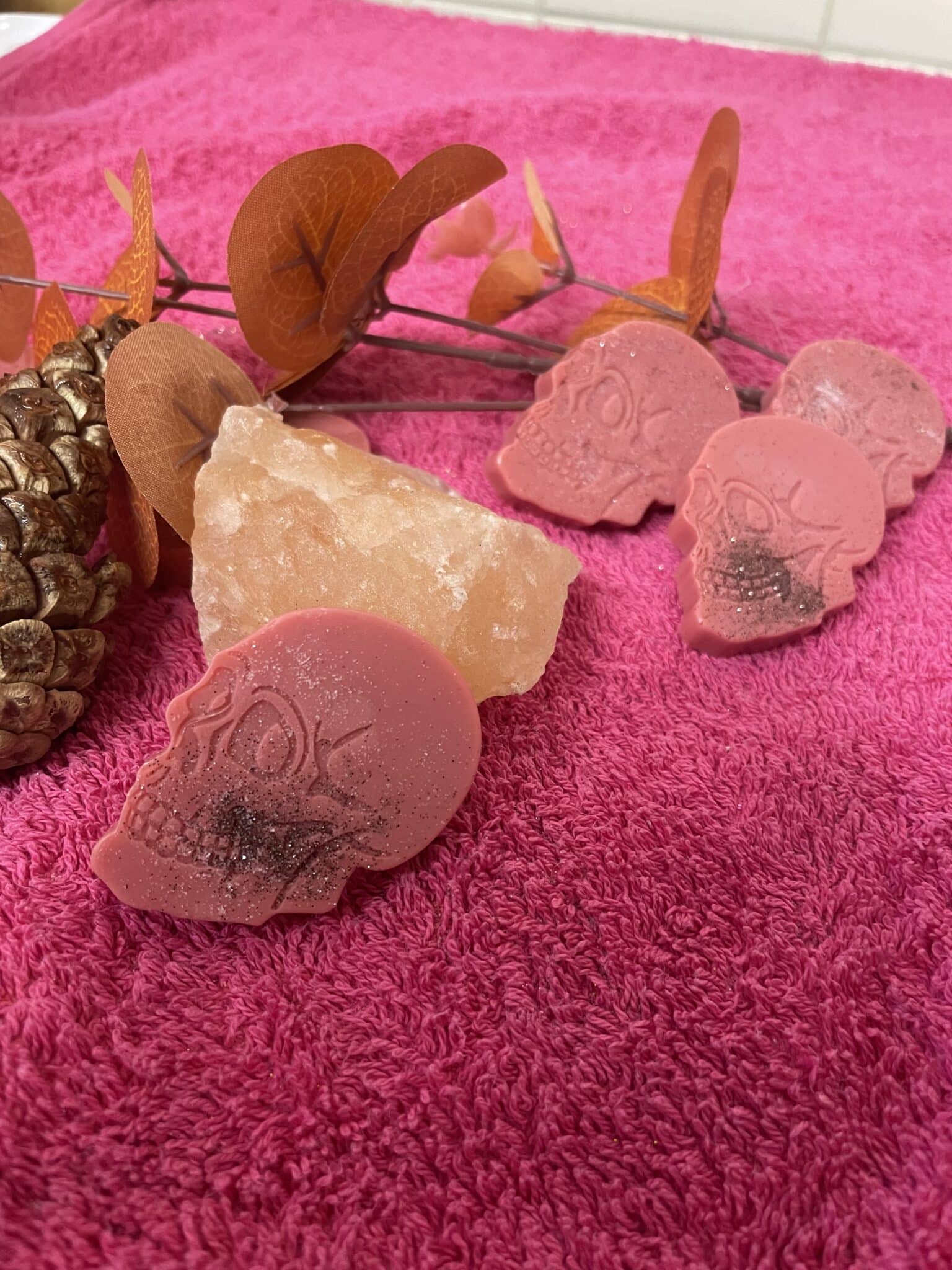 Add that spooky toiletry touch for your guests attending this years Halloween event with some skeleton head guest soap. Maybe gift one as a Thankyou for those witchy hands when the party’s over.. contains our usual nourishing goats milk ingredients together with essential oils of Black Spruce Black Pepper and Sandalwood for a magic twist. Packaged in Packs of 3 with a pinch of mystical dust for a right good screaming clean.