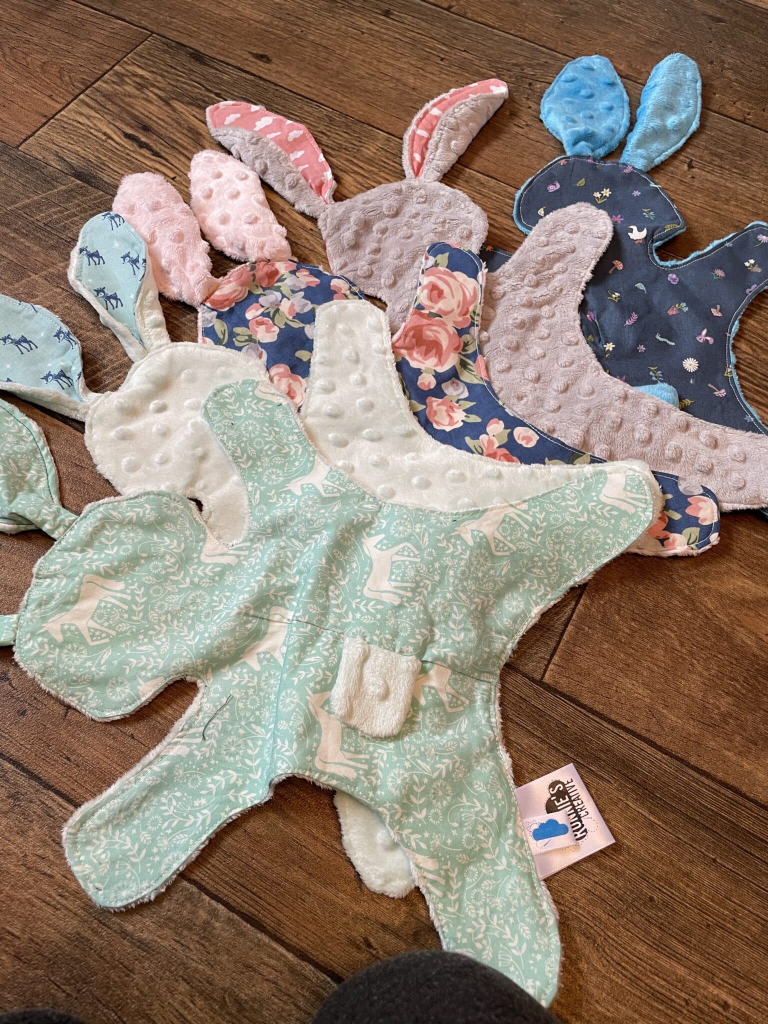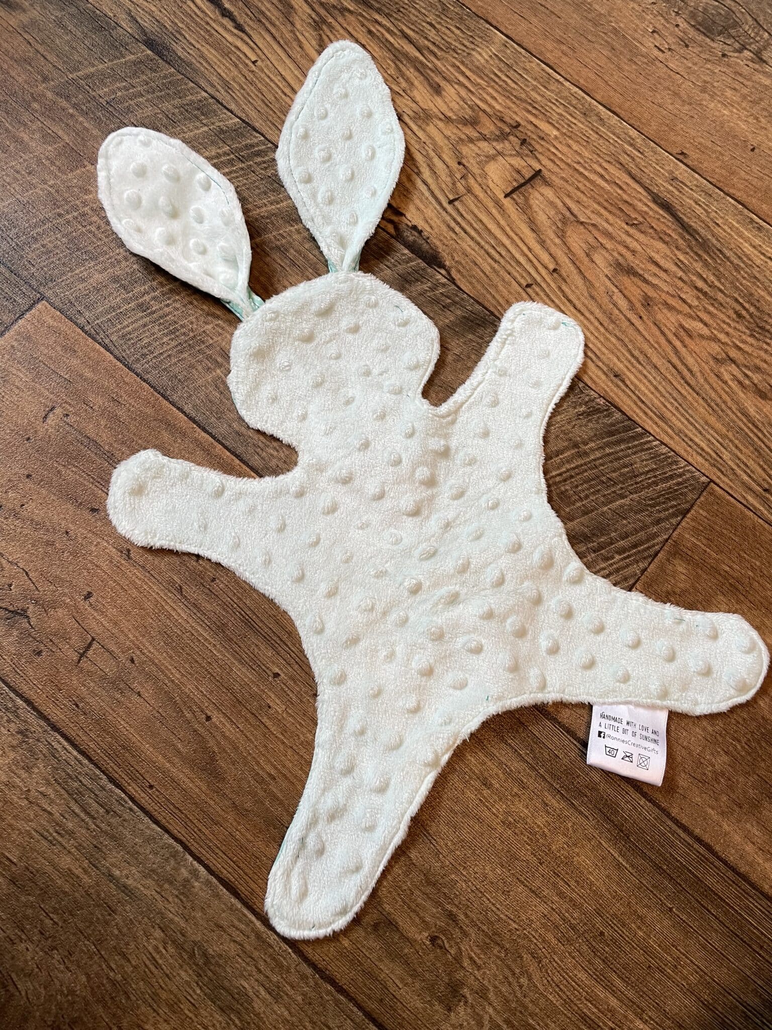 This cute and cuddly bunny shaped blanket is perfect for snuggling.