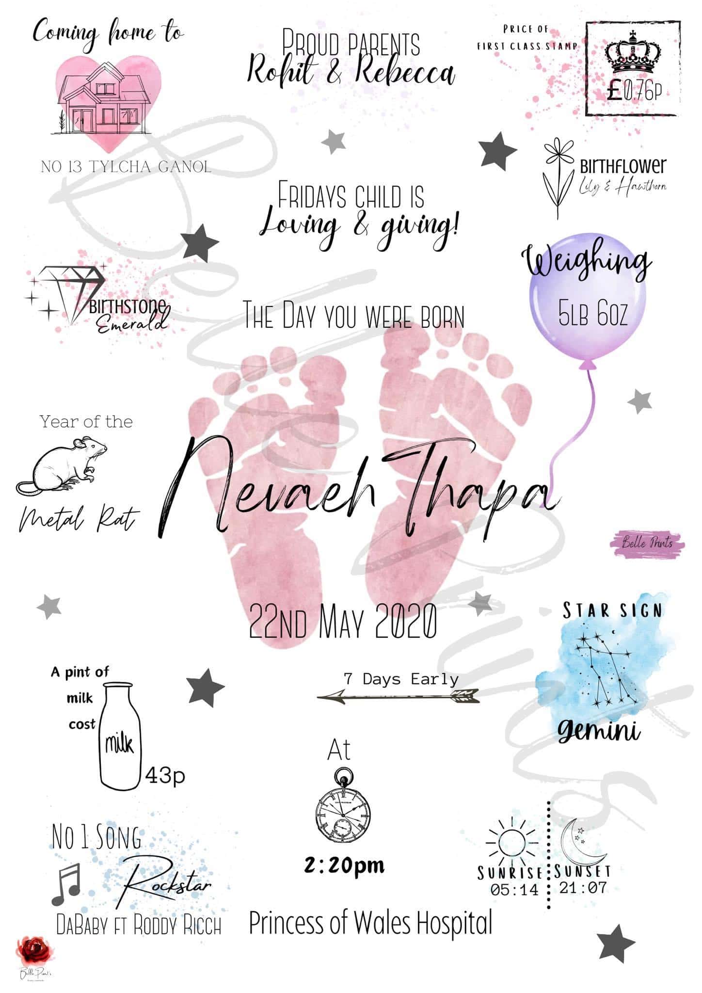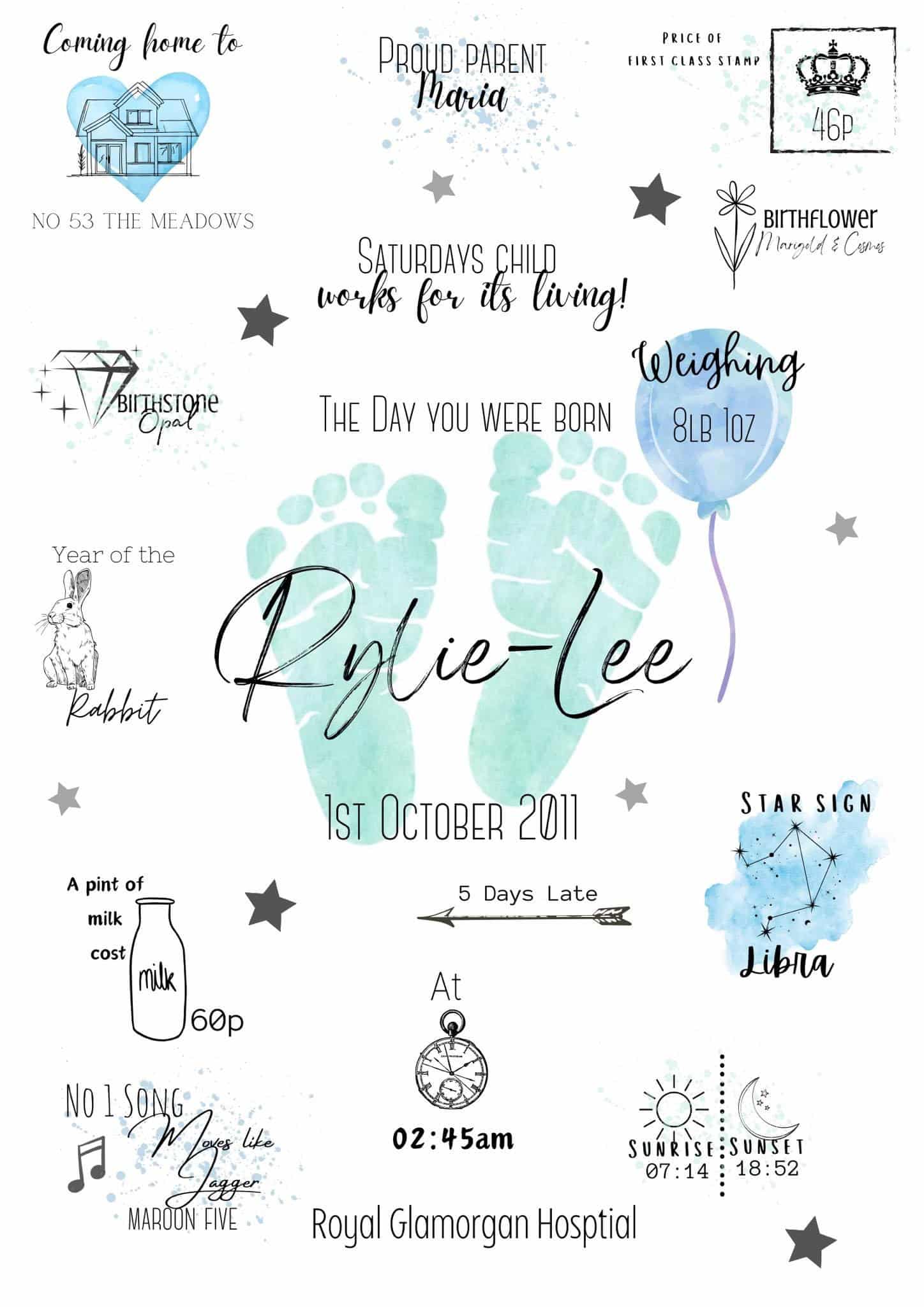 On the day you were born personalised baby print, personalised to the day they were born. These prints are perfect gifts for new mothers, for your newborn baby or as a christening gift. They are perfect nursery decor or perhaps to put away in a memory box. These on this day prints are perfect for any new parents, christening gifts or as a birthday gift. Holding many interesting facts and birth information from the day your baby was born to treasure for years to come. These prints aren’t just for babies, they can be made for ANY year regardless if that’s 1923 or 2023!