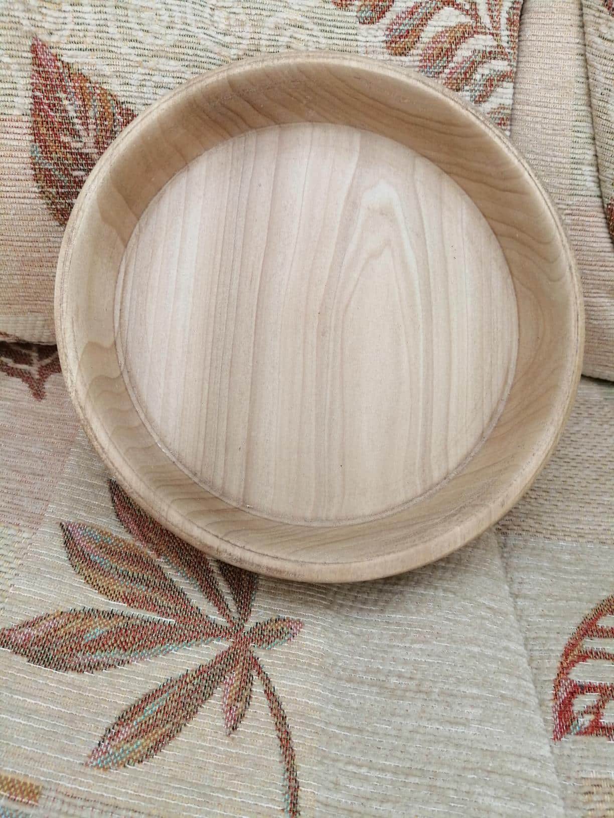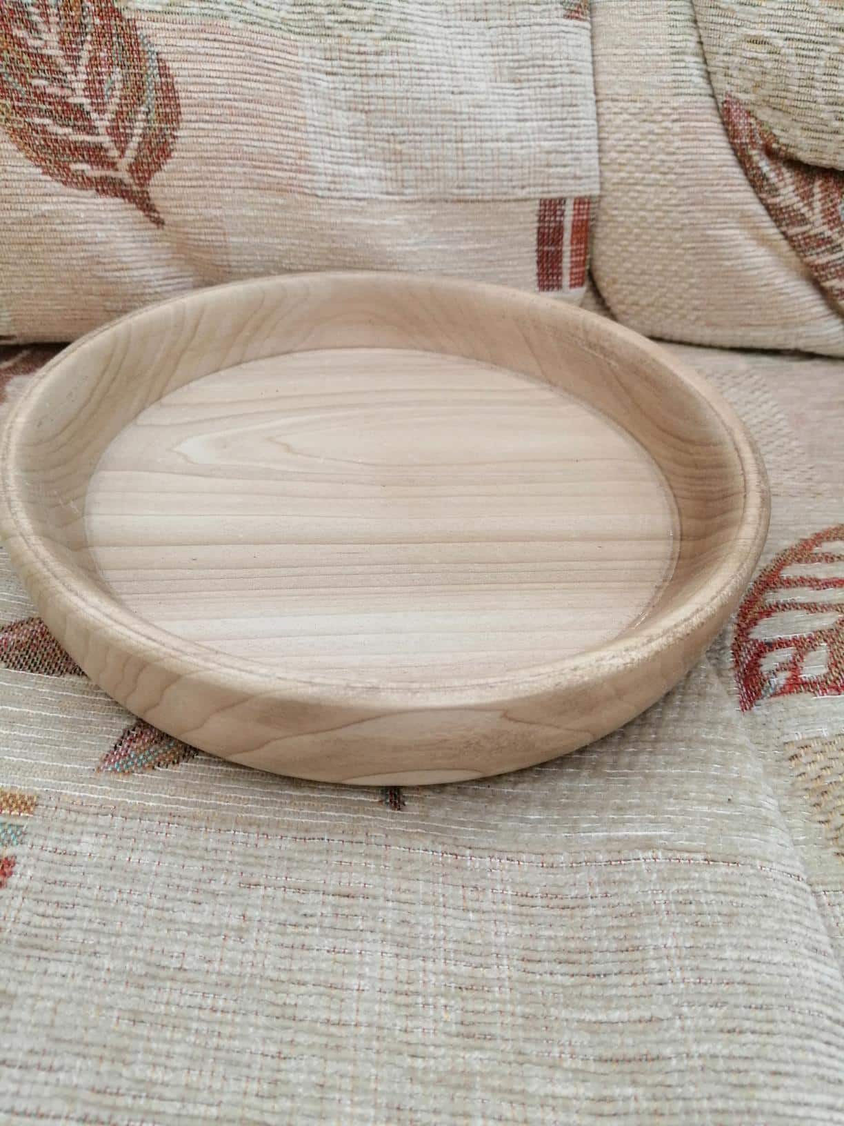 Lovely dish made from a seasoned block of Tulip. It was turned on my lath then sanded to a smooth finish before several coats of bee wax