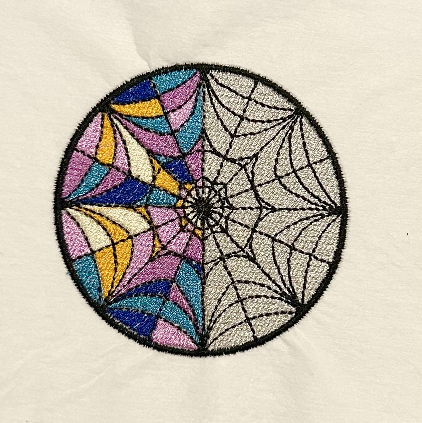 This is an embroidered iron on applique of Ophelia hall window from Wednesday Addams