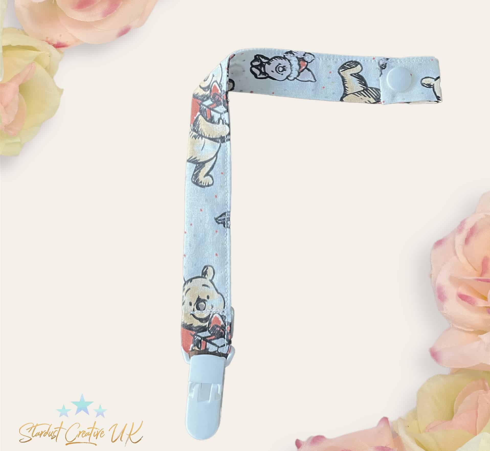 Winnie the Pooh dummy clip pacifier strap. Christmas edition. Toy saver teether attachment